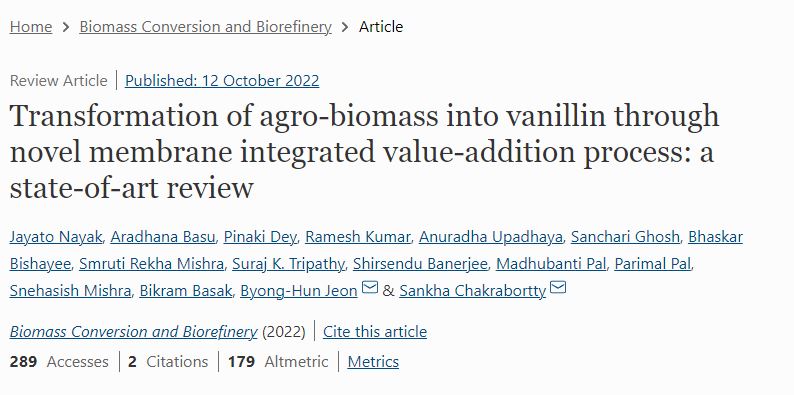 2022 | - | Syntrophic bacteria-and Methanosarcina-rich acclimatized microbiota with better carbohydrate metabolism enhances biomethanation of fractionated lignocellulosic biocomponents | BIORESOURCE TECHNOLOGY | SCIE | 0960-8524 | - | 360 | - | - | 202209 | 1 | 9 | - | Basak, Bikram | - | - | Byong-Hun Jeon | - |