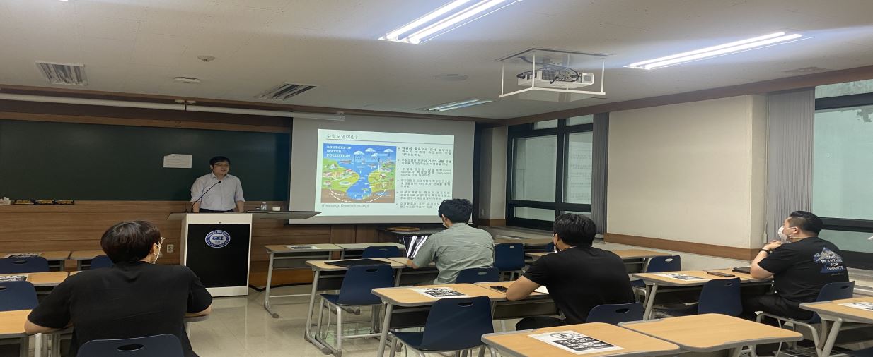 2021년 06월 29일(화) 오후 1시부터 진행된 강연은 과학기술관의 세미나 실에서 진행되었으며 한국 과학 기술 연구원의 안 용태 박님께서 진행을 맡아주셨다. 한양대학교 학부생과 대학원생을 대상으로 진행된 강연의 주제는 수질 오염을 처리할 때 어느 물질이 효율적이며 그 조건은 무엇인지, 또한 이와 함께 사용할 수 있는 오존 산화 공정 및 활성탄 사용법에 대한 논의였다. 여러 흡착등온식을 이용하여 실험 조건에 알맞은 분석값을 제시하였으며, 이외에도 촉매 및 UV 등을 사용한 여러 방법들에 대한 얘기가 이루어졌다. 1시간이 넘는 전문가의 견해를 통해 일반적으로 사용되는 흡착제와 그 사용 조건에 대해 알 수 있었으며, 이를 통해 본 사업팀의 연구 가이드라인 제시 및 연구력 증진에 기여할 수 있었다.